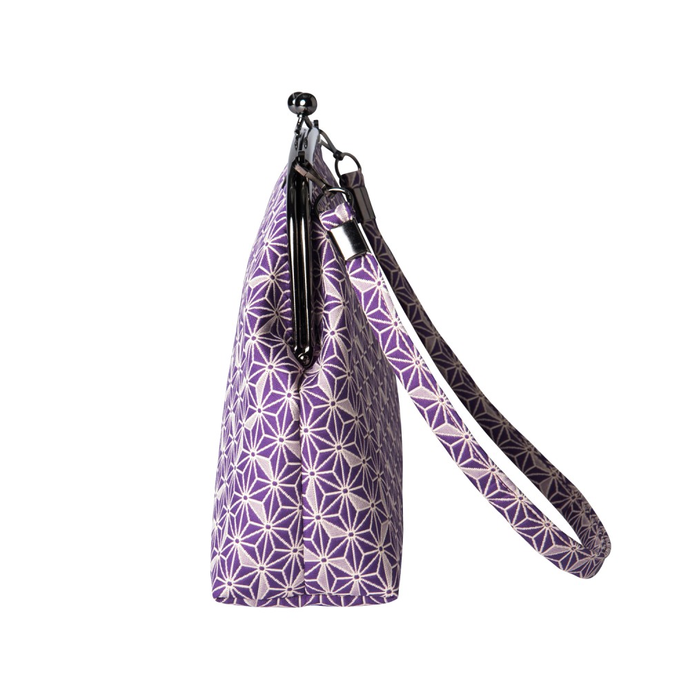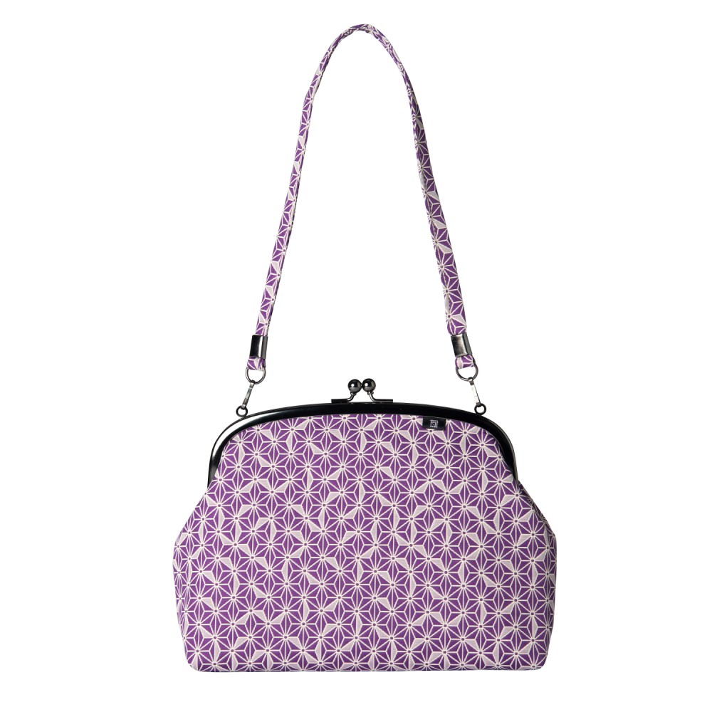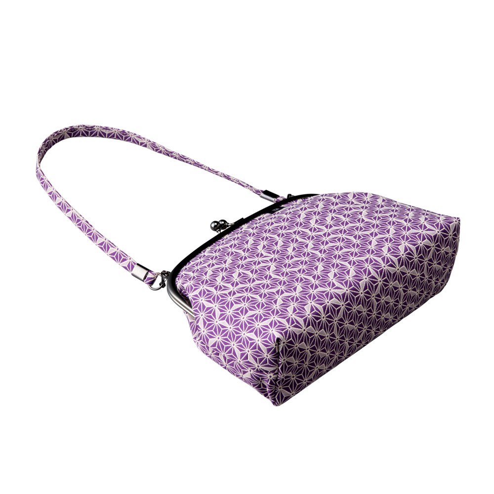 【小ぶりなふくれ織りがま口バッグ】 麻の葉柄 がま口バッグ《 紫 》 がまぐちハンドバッグ 日本製 京都 さんび