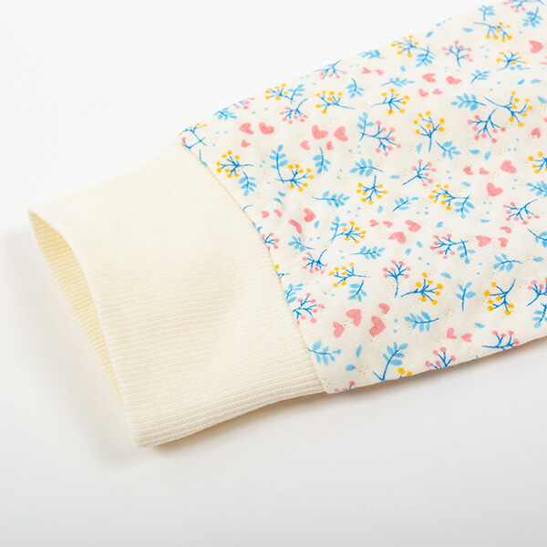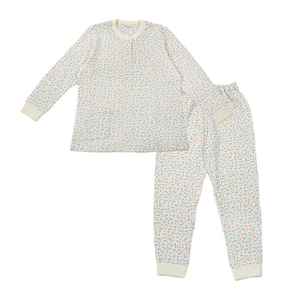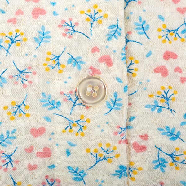 ハートとボタニカルの総柄が可愛いニットキルトパジャマです。