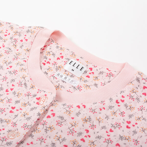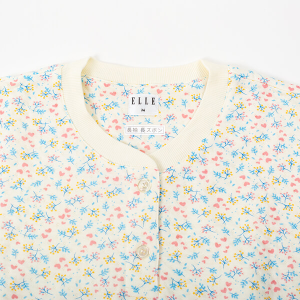 【ELLE】ハートボタニカル柄ニットキルトプリント レディース 冬用 パジャマ 上下セット
