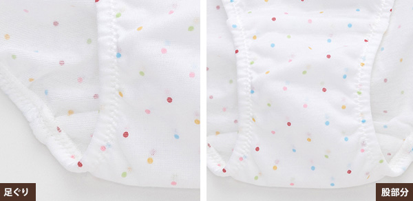![]() 足ぐり縫い目は折り返してゴムをくるむようにしました。ゴムのあたりがやわらかくなり、きつく感じません。 |