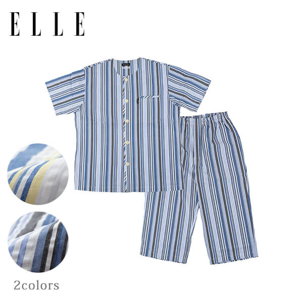 [紳士]【ELLE】 先染 サッカー ストライプ メンズパジャマ