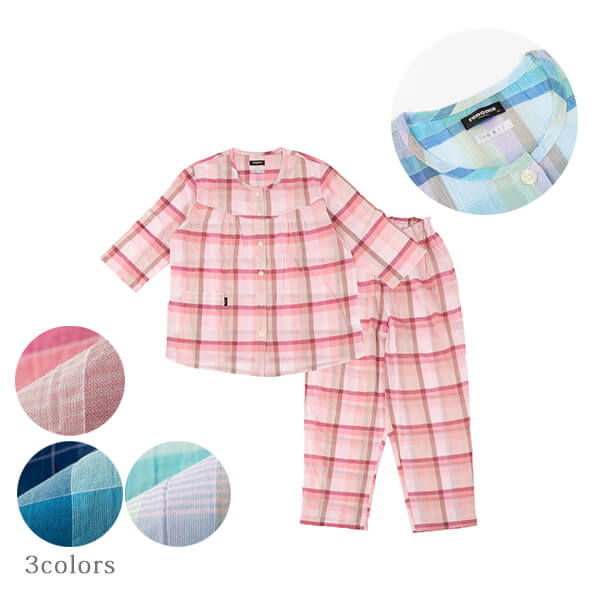 【renoma】 先染 シャーリング チェック レディース 夏用 パジャマ