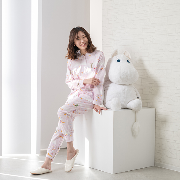 【MOOMIN ムーミン】×【Amour アムール】天竺 プリント(草原)無地 レディース パジャマ