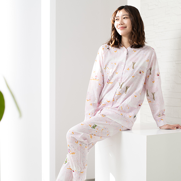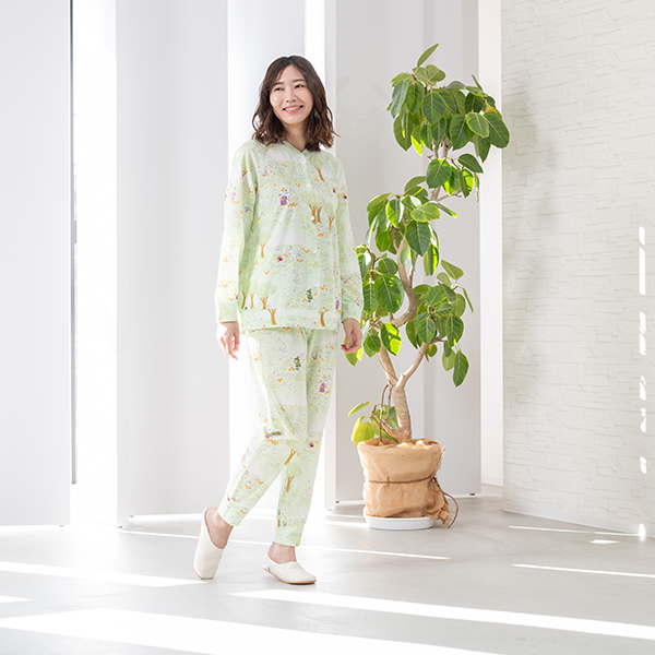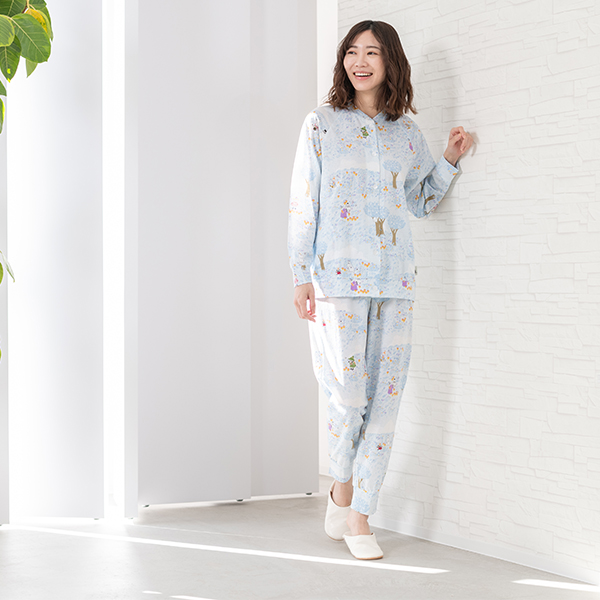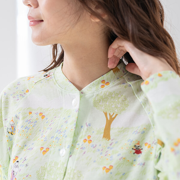 【MOOMIN ムーミン】×【Amour アムール】天竺 プリント(草原)  無地 レディース パジャマ 綿 ムーミンキャラクター