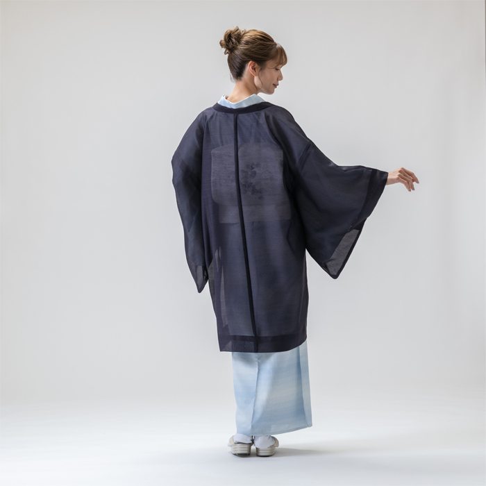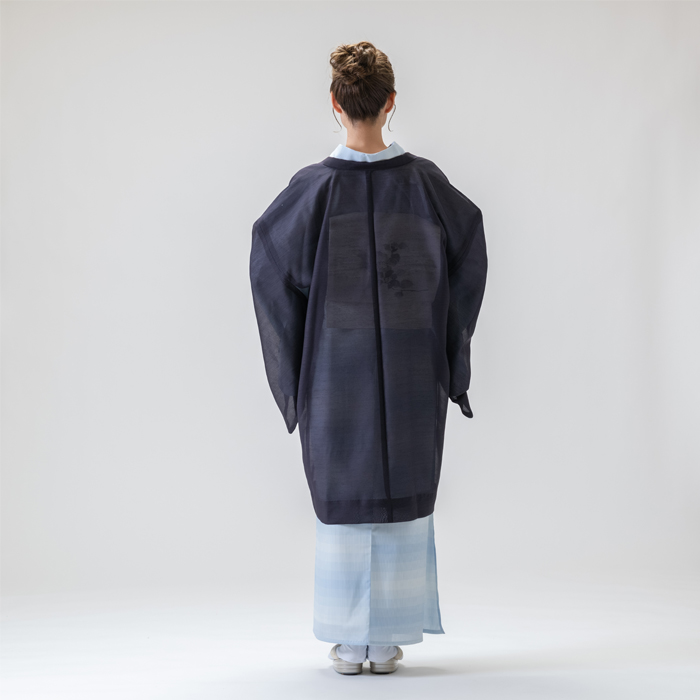 程よい透け感とロング丈のデザインで、うしろ姿もすっきりとしています。