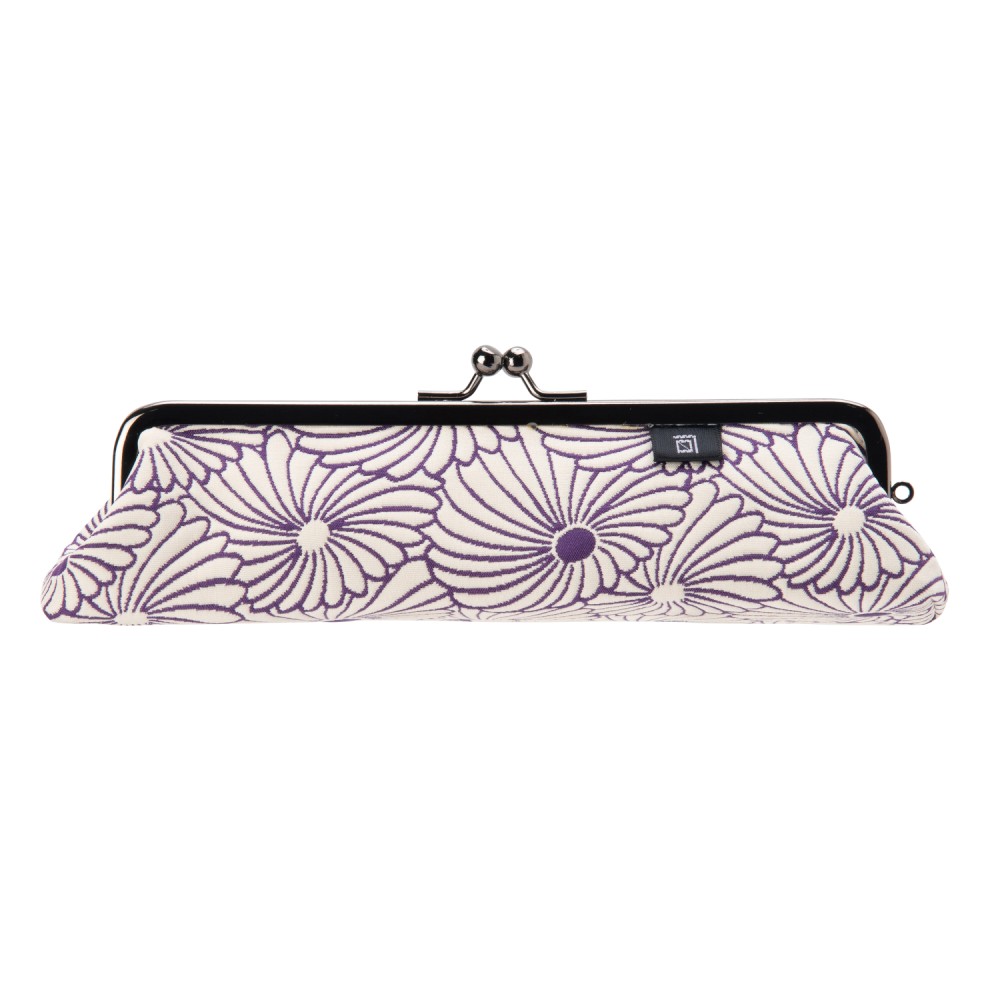 【ふくれ織りがま口】 菊柄 ペンケース《 白×紫 》 がまぐち 日本製 京都 さんび