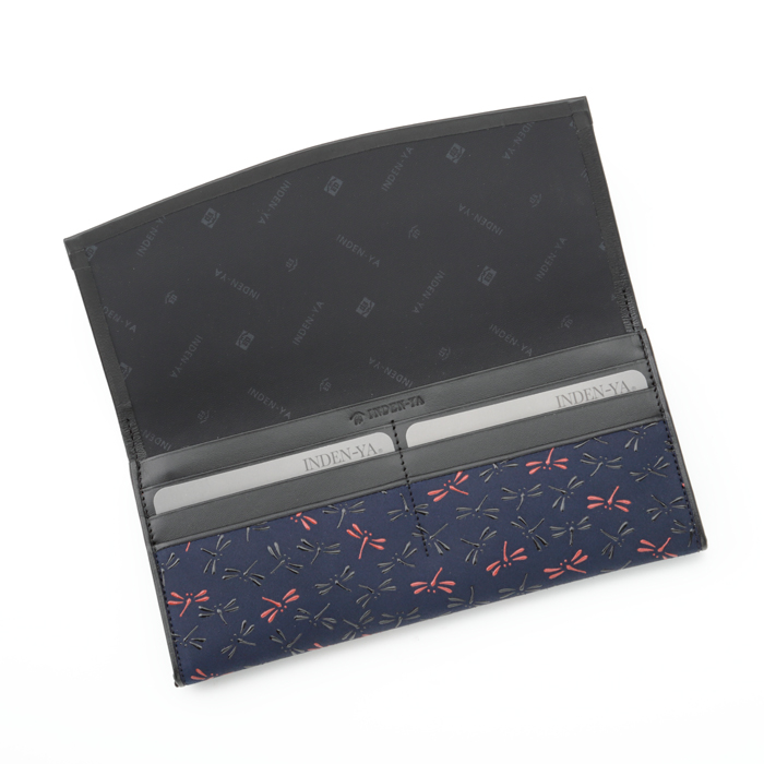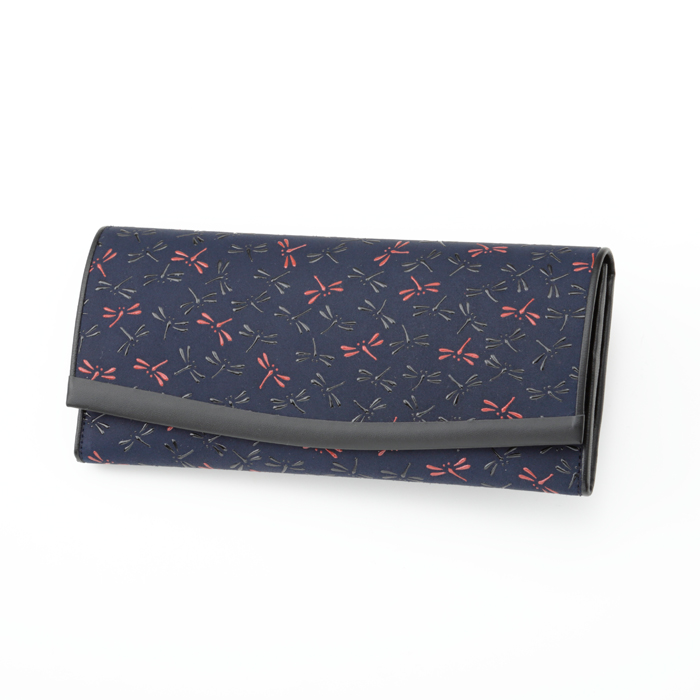 ギフトに好適!フタを牛革でふちどり緩やかな曲線を描いた大人な雰囲気の束入れ 【印傳屋 なごみ 7516】甲州印伝 本革 かぶせ式長財布 とんぼ柄