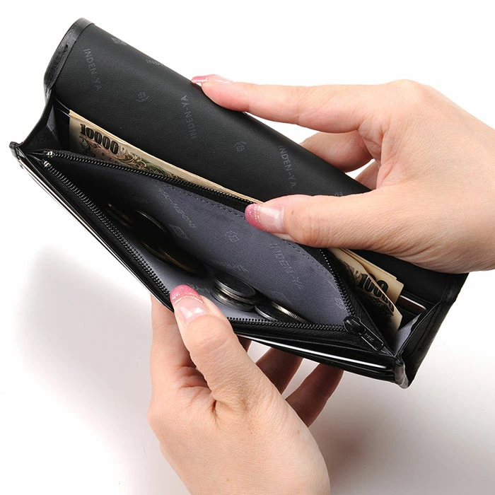 内側には、財布の横幅いっぱいの大きさのファスナー小銭入れがあります。