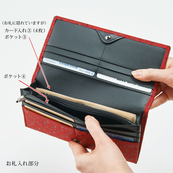 ●詳細:札入×1/カード入×14/ポケット×4/中仕切りを兼ねたファスナー式小銭入×1