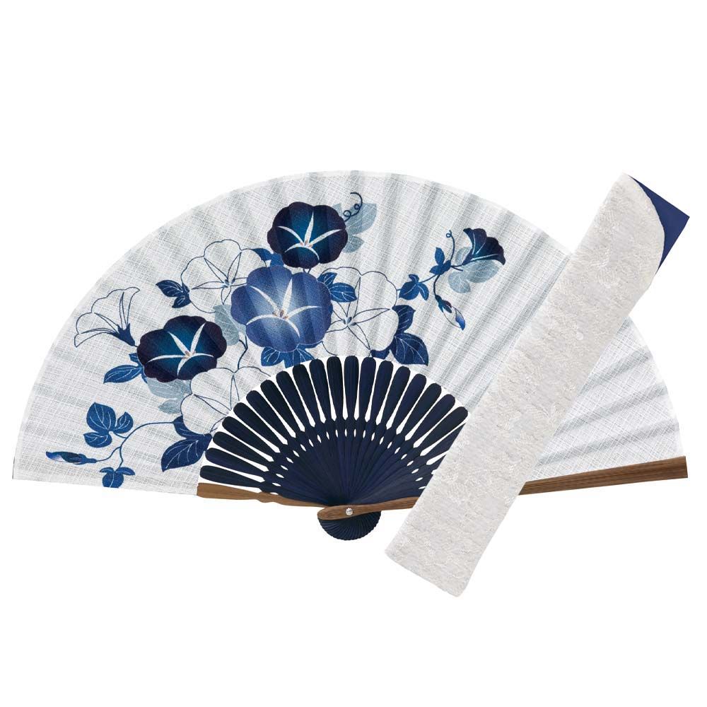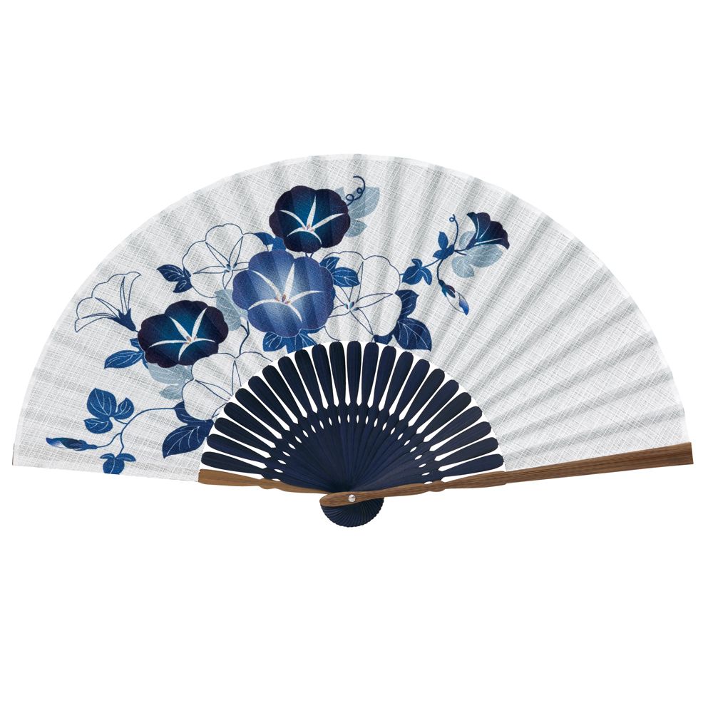 白地に映える藍色が爽やかに美しい扇子です 扇子セット(紙箱入) 藍花 朝顔 女性 扇子 京都 さんび