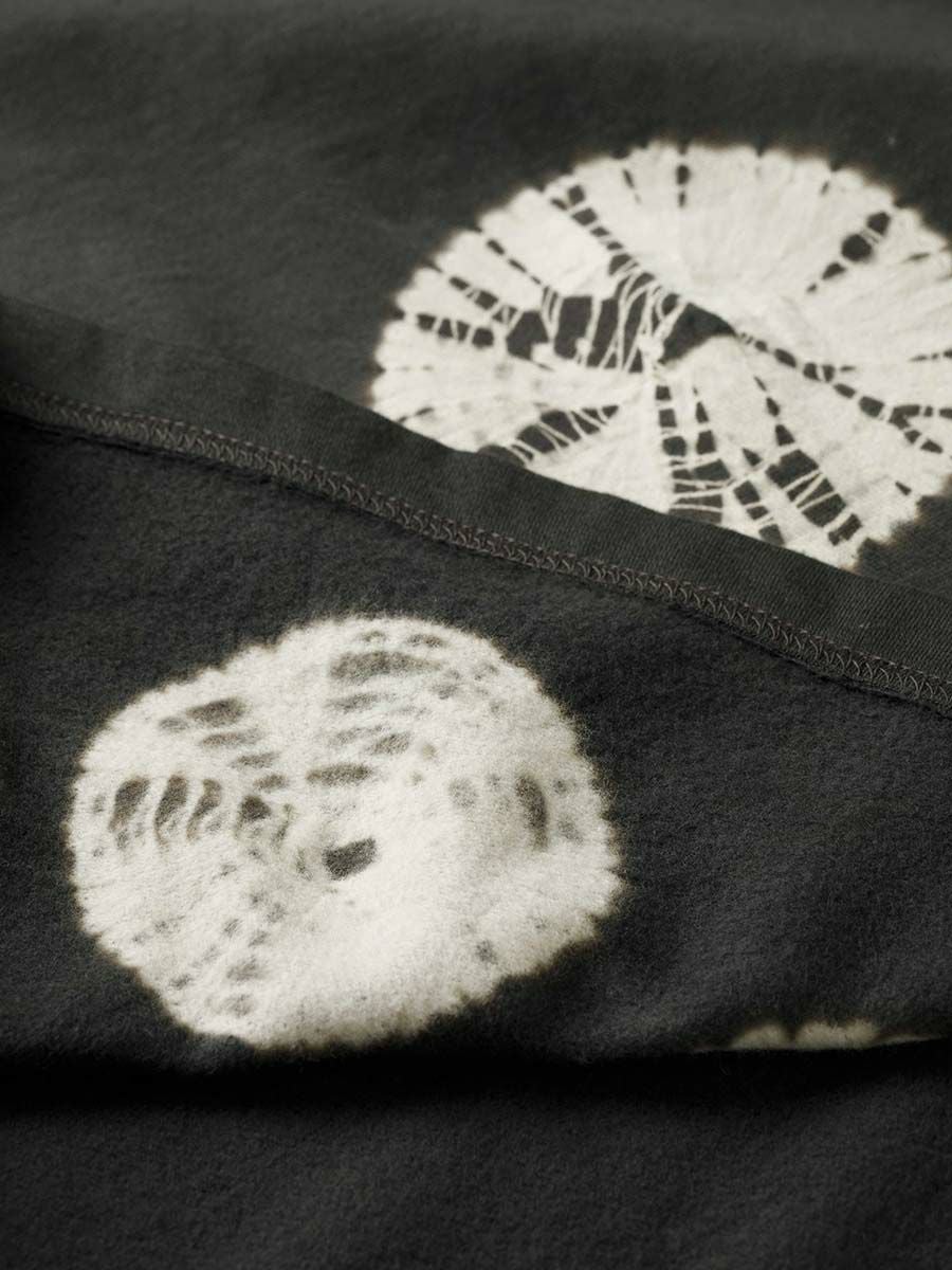 なめらかな肌触りと優雅な光沢感のある裏毛起毛素材に日本伝統の“絞り染め”を施したまさに唯一無二の逸品です。