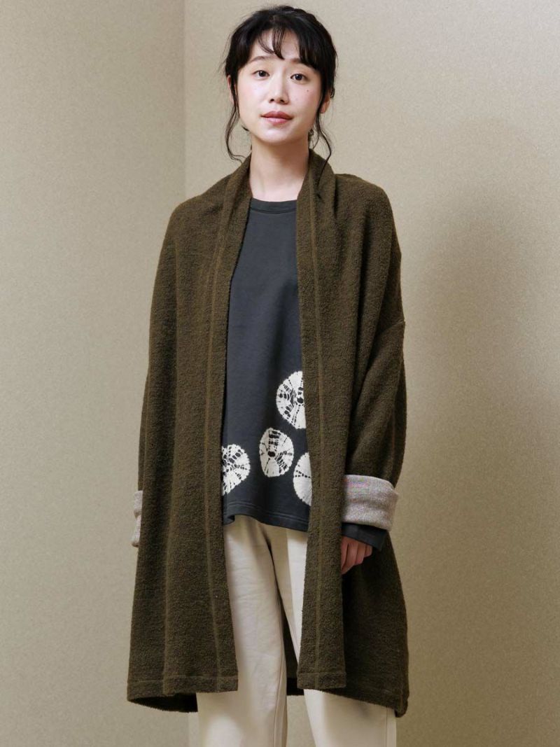 外に行くときはコートの下に着て頂き、家の中では羽織物としても活躍するマルチなローブです。