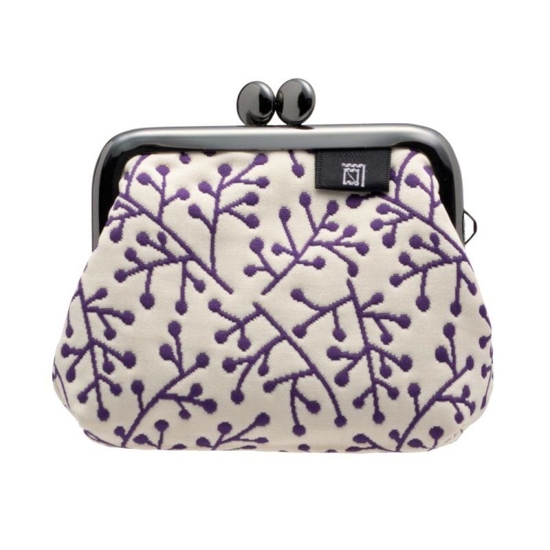 マチ付きで厚みがあり、小銭をたっぷり収納できます。口金が囲碁の碁石の形に似ていることから「碁石がま口」とも呼んでいます。