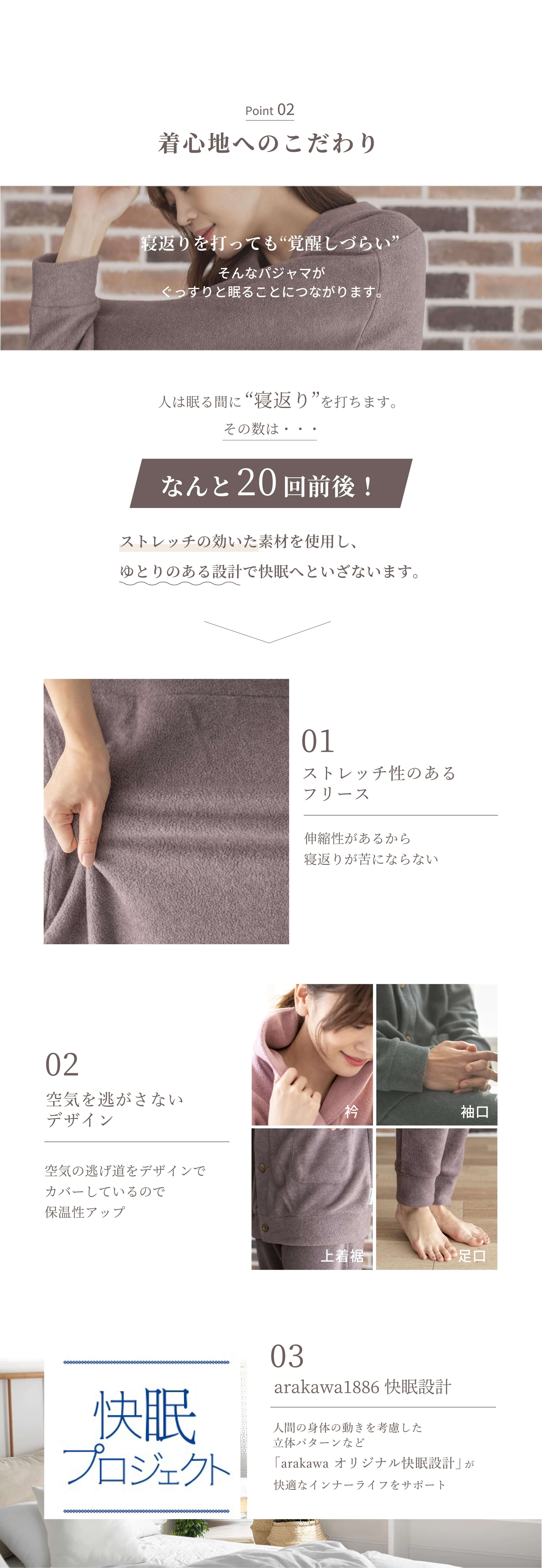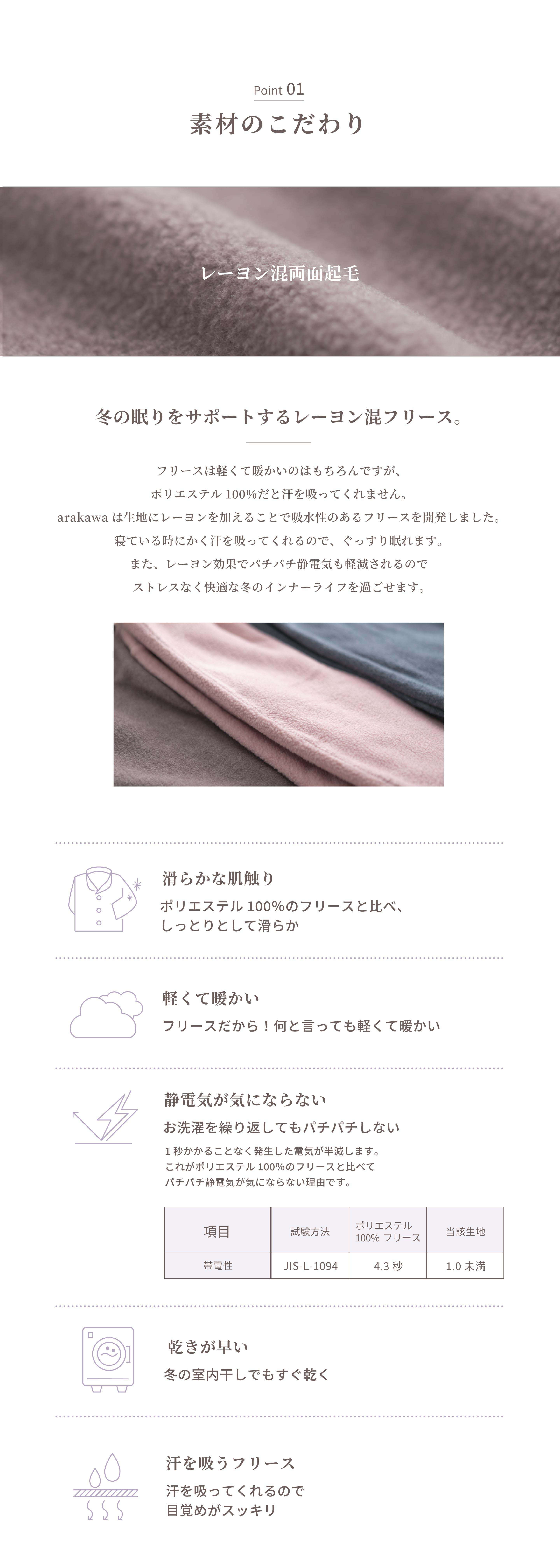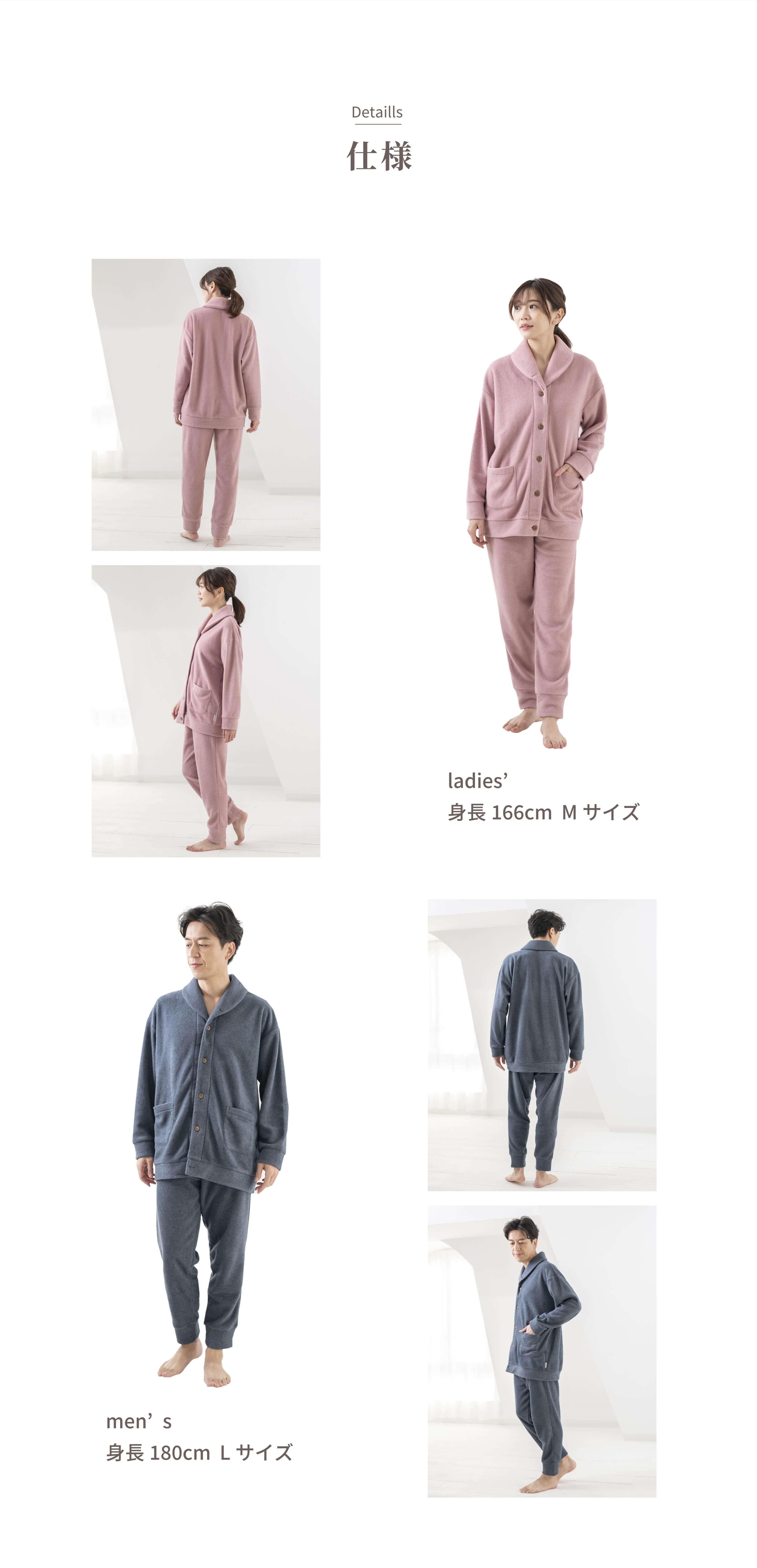 【Arakawa1886 快眠プロジェクト】レーヨン混 フリース 両面起毛 リラックス レディース メンズ ペア 無地 パジャマ