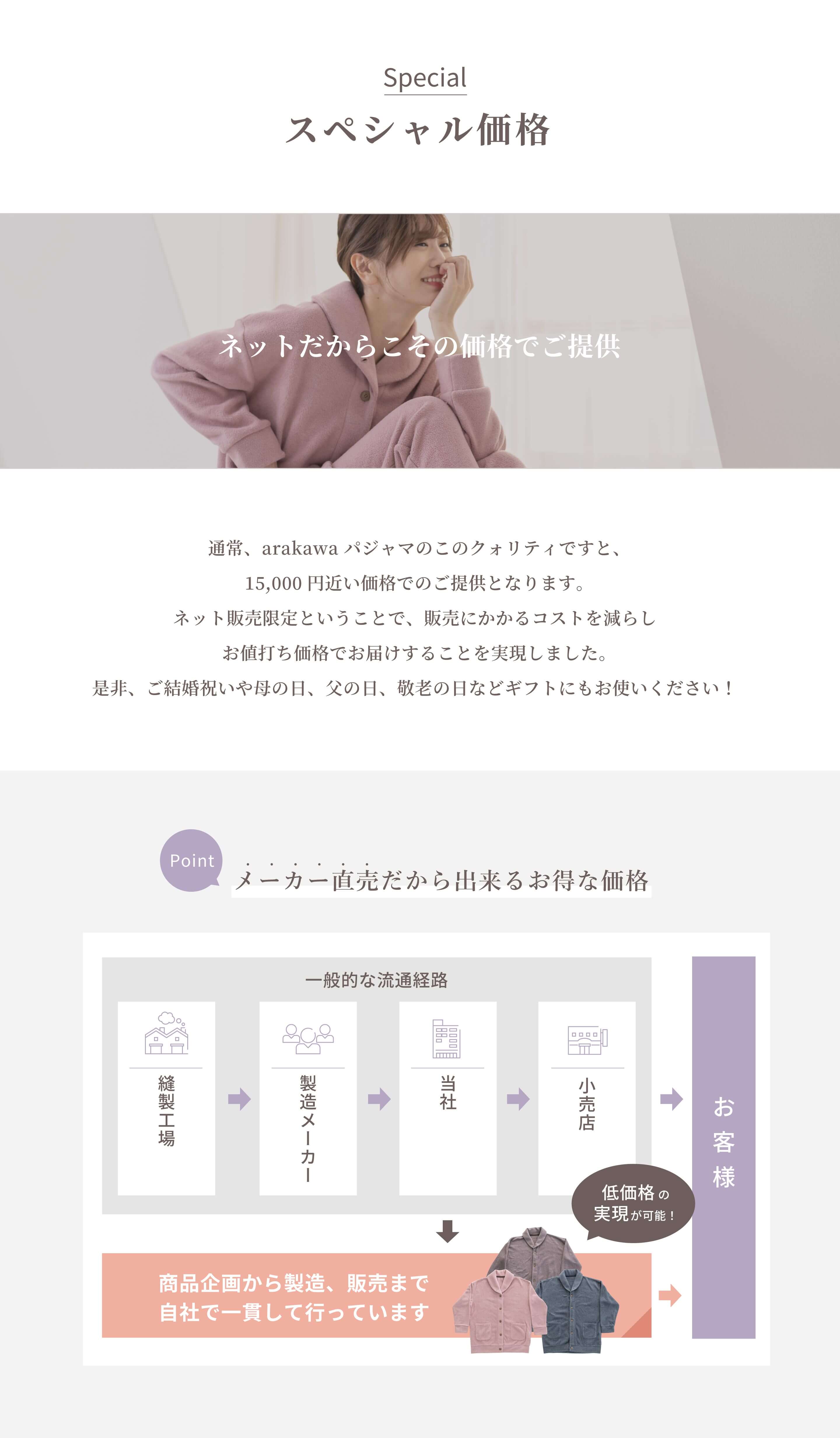 早速着用してみました。 とっても軽くて着心地のよいパジャマです。 そして何より温かい! 寒がりの私には、まさに探していたパジャマでした。 今まで、ストレッチが効いていないパジャマを着用していたので、伸縮性のあるパジャマがこんなに快適なのかと実感いたしました。 休みの日は、ルームウェアとして一日着ていたい気分です。 新商品お試しキャンペーンをしている内に洗い替えが欲しくなりました。