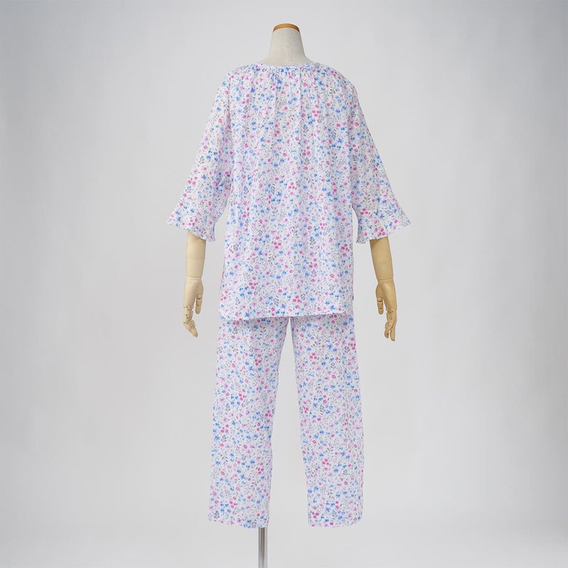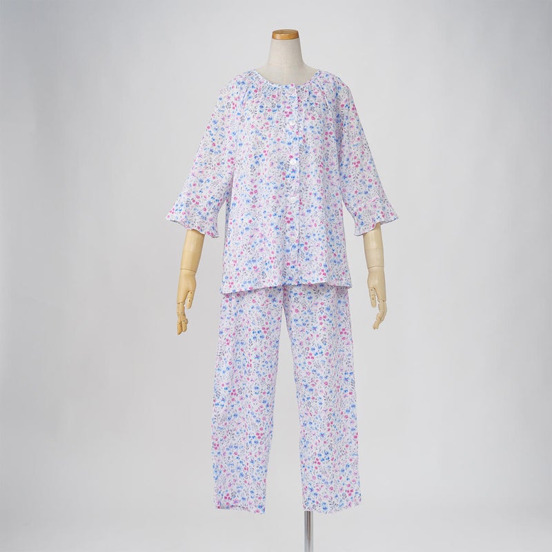【Amour 150/ アムール150】【小柄な方向け】高島クレープ 中花柄プリント ラグラン袖 7分袖・長ズボンパジャマ 日本製