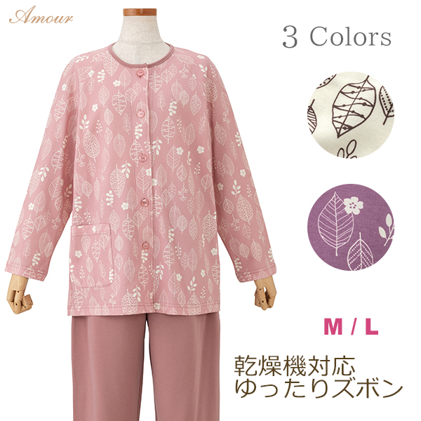 【Amour アムール】ダンボールニット リーフ柄 プリント レディース パジャマ