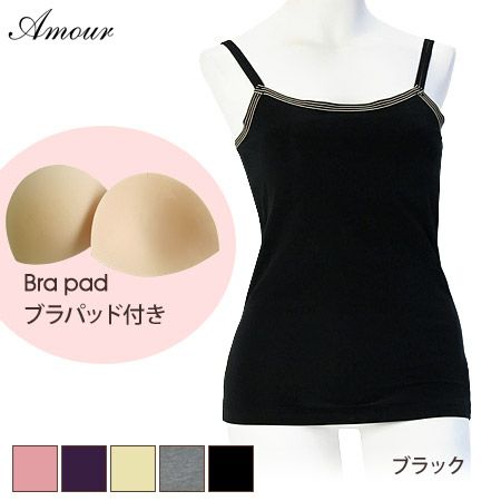 ボーダーテープ カップ付き ソフト キャミソール【Amour/アムール】(ブラカップ/ブラキャミ/ブラトップ/レディース/婦人/下着/肌着/インナー/アンダー/綿/コットン/マタニティ/日本製)