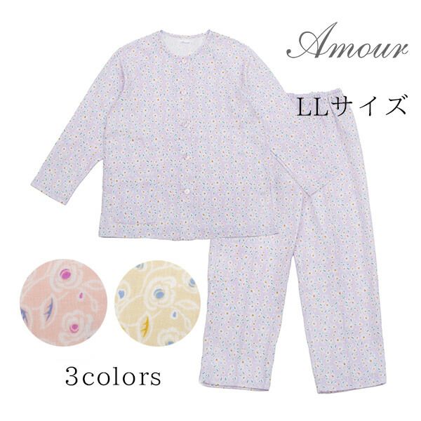 【Amour アムール】 エイトロック プリント 中小花柄 レディース パジャマ LL/3L 日本製 女性用 ルームウェア 冬 コットン 前開き 長袖 ギフト