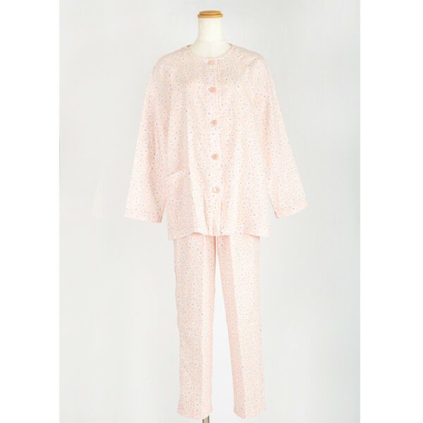 【Amour アムール】150cm対応 小柄な方用 二重ガーゼ 小バラ柄 プリント レディース パジャマ 春 秋 綿100% 日本製 乾燥機可 入院 入院着 長袖 ラグラン袖