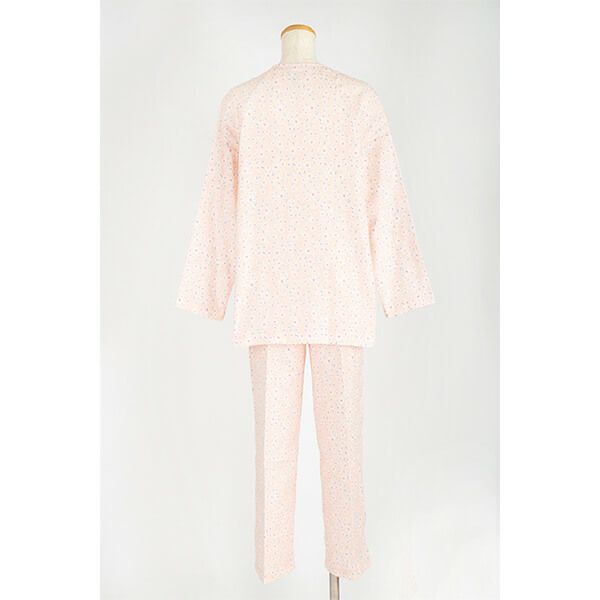 【Amour アムール】二重ガーゼ 小バラ柄 プリント レディース パジャマ 春 秋 綿100% 日本製 入院 入院着 長袖 ラグラン袖 LLサイズ 大きいサイズ