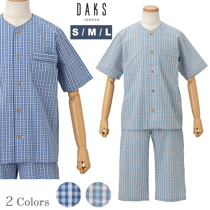 [紳士] 綿サッカー チェック柄 メンズ 夏用 半袖 パジャマ 【DAKS】ダックス
