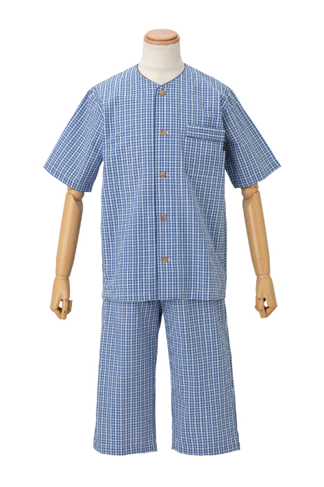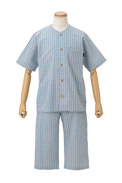 [紳士]綿サッカー チェック柄 メンズ 夏用 半袖 パジャマ 【DAKS】