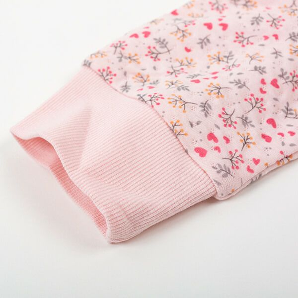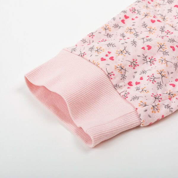 ハートとボタニカルの総柄が可愛いニットキルトパジャマです。