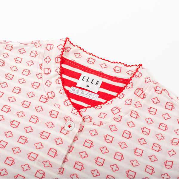 【ELLE】コップ柄 綿100%パジャマ レディース 冬用 上下セット
