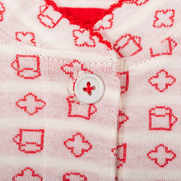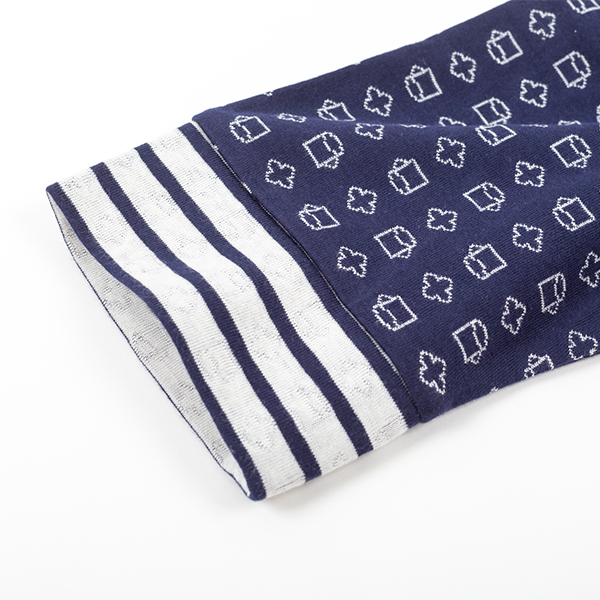 コップ柄と袖口ボーダー柄が可愛い綿100%パジャマです。