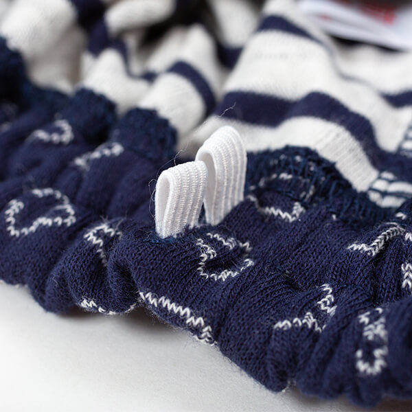 ウエストは、こだわりでやわらかい2本のゴム仕様にしているので、締め付け感を軽減します。