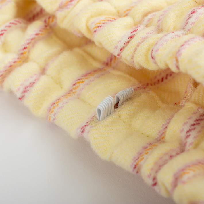 袖口、裾口にゴム通し穴を付けているので、調節やアレンジが可能です。