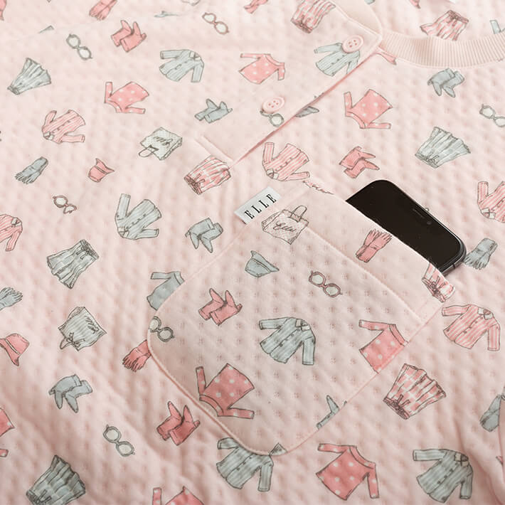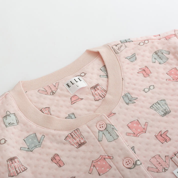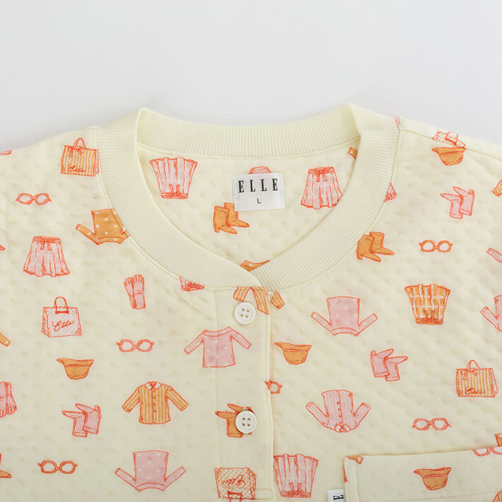 クローゼット柄が可愛いELLEらしいニットキルトパジャマです。