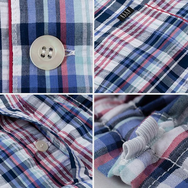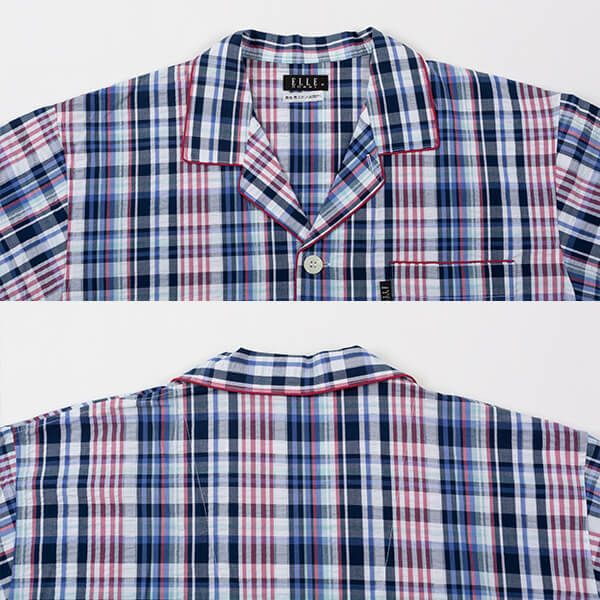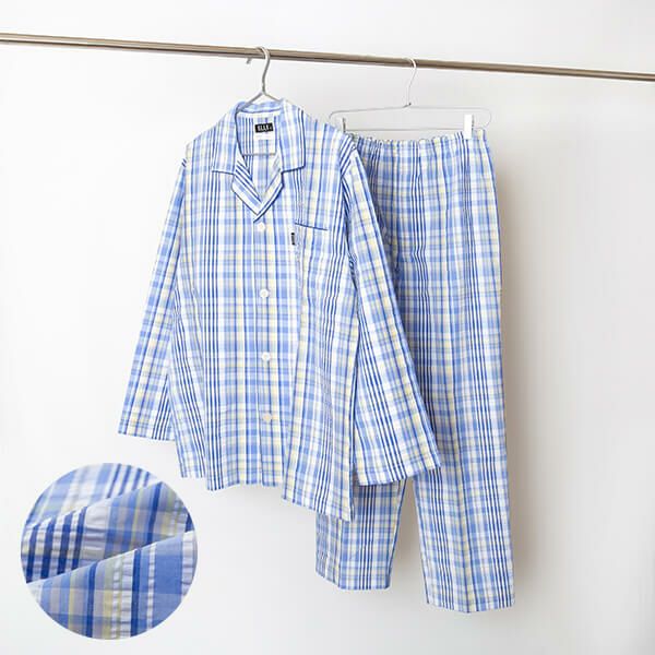 [紳士]サッカーチェック パジャマ【ELLE】(ルームウェア/上下セット/ナイトウエア/部屋着/綿/コットン/夏/父の日/ギフト/プレゼント)