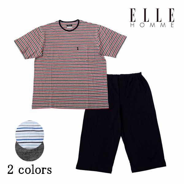 【ELLE HOMME/エルオム】天竺 ボーダー × 無地 メンズ 夏用 上下セット