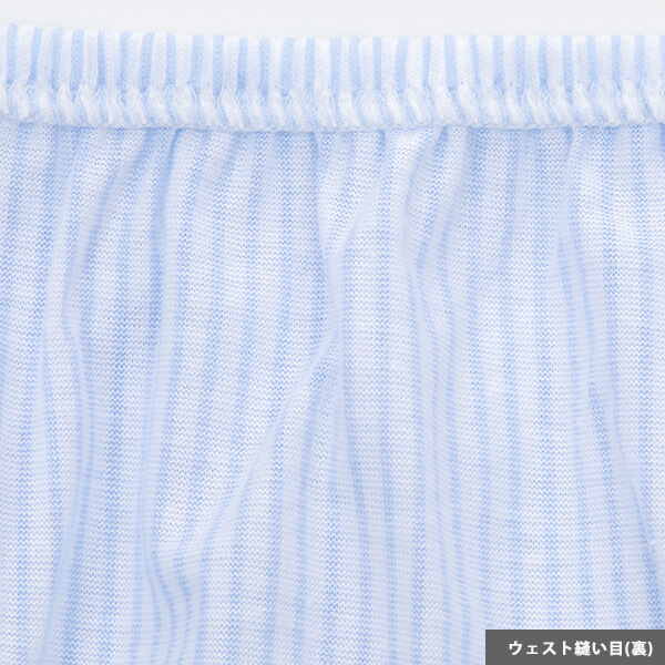 足ぐり縫い目は折り返してゴムをくるむようにしました。ゴムのあたりがやわらかくなり、きつく感じません。 |