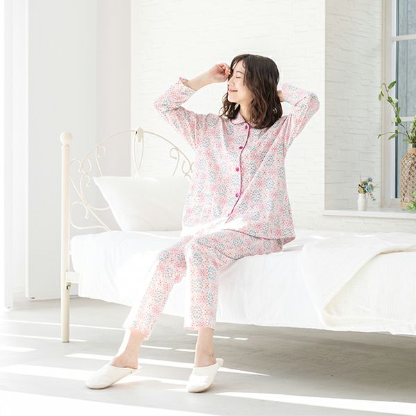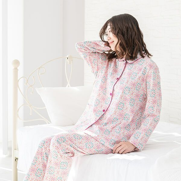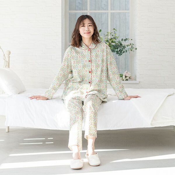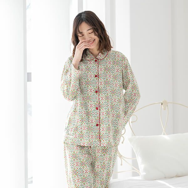 【LIBERTY】リバティ 天竺プリント レディース パジャマ 綿100% 高級 日本製 ギフト リバティプリントミセス 春 夏 長袖 花柄 母の日 敬老の日 日本製 セット M/L/LL