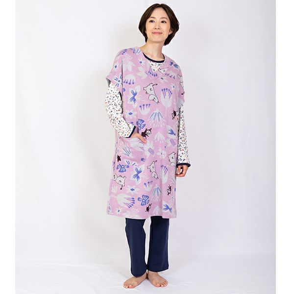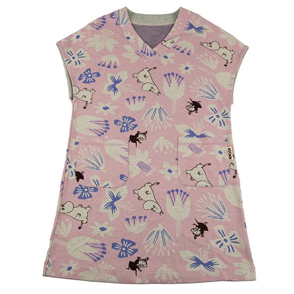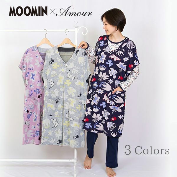 【MOOMIN ムーミン】×【Amour アムール】ダブルジャガード かぶって着る エプロン ワンピース 【ムーミンとミィと花】