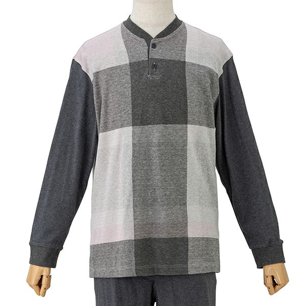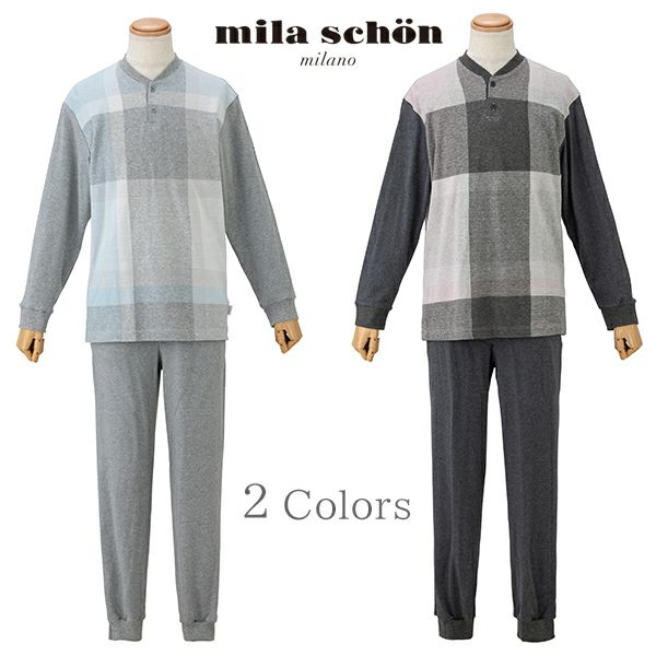 [紳士] ダブル ジャガード 大きいチェック柄 / スムース 無地 メンズ パジャマ 【mila schon】