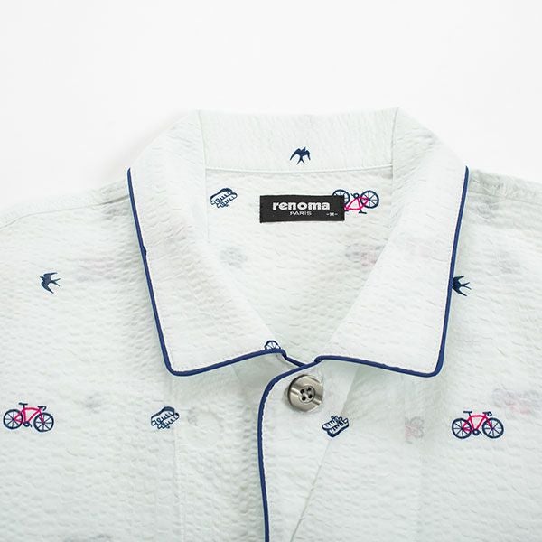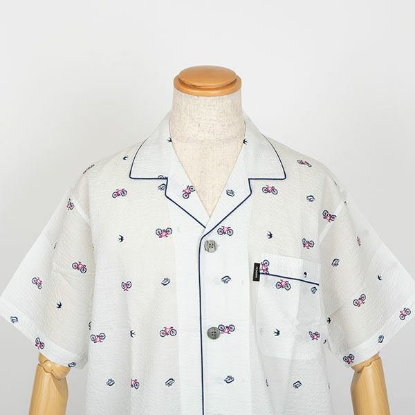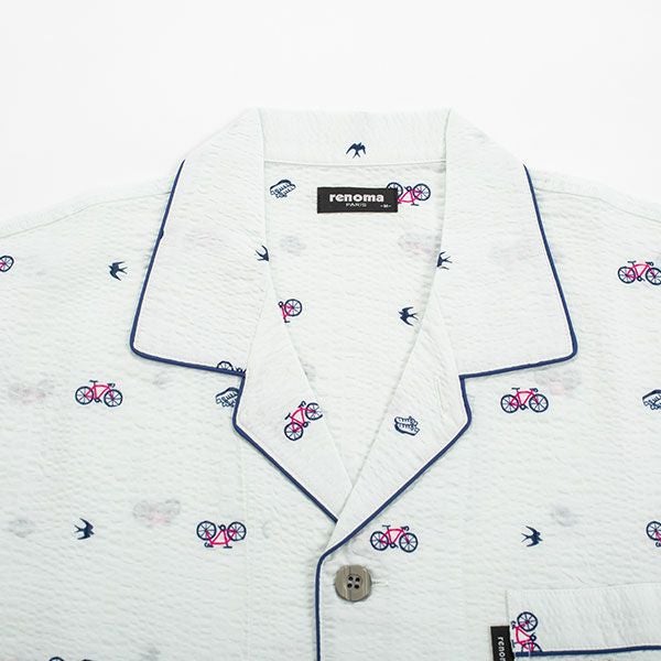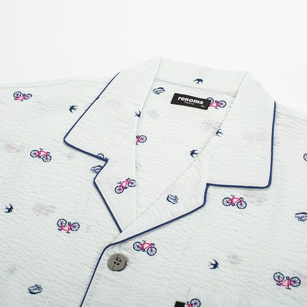 【renoma】 紳士パジャマ 自転車・スニーカー・ツバメがプリントされたリップル半袖パジャマ