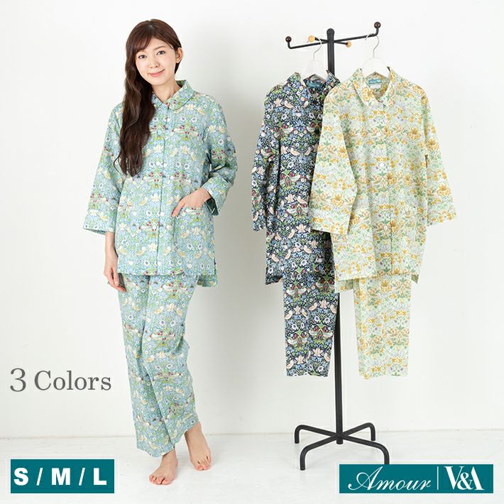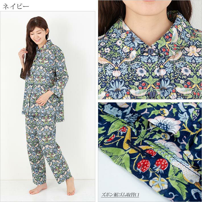 ウィリアム・モリス【いちご泥棒】前開きコットンリップルプリントパジャマ