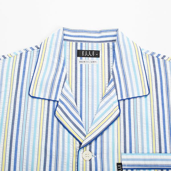 【ELLE】 紳士パジャマ 爽やかなストライプ柄のサッカーパジャマ