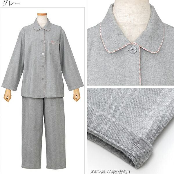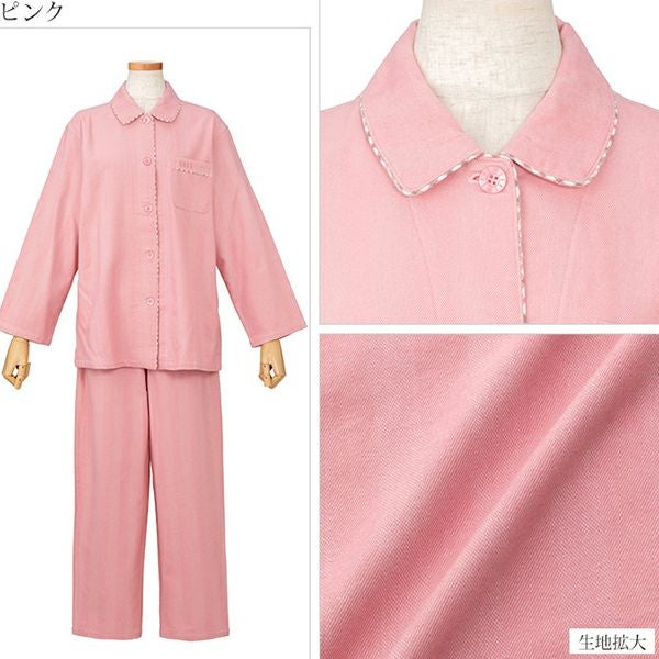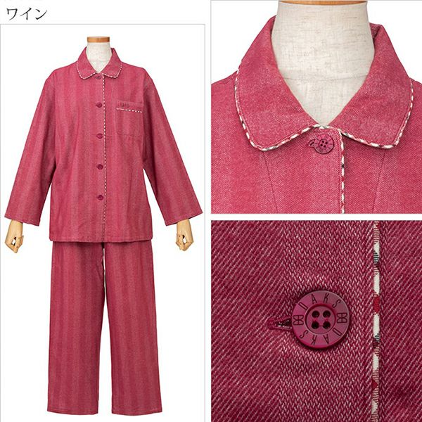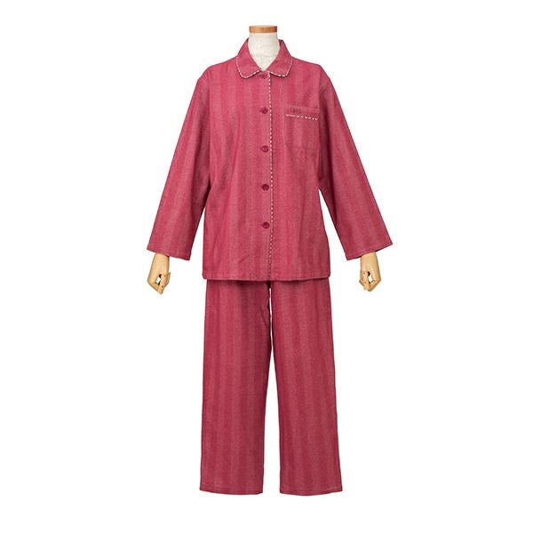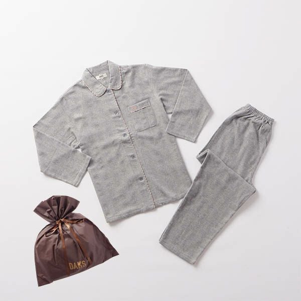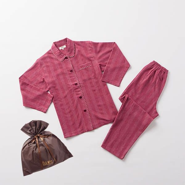 <ラッピング済み> 【DAKS】 中空糸 ネル シャドーストライプ 前開き 全開 レディース パジャマ