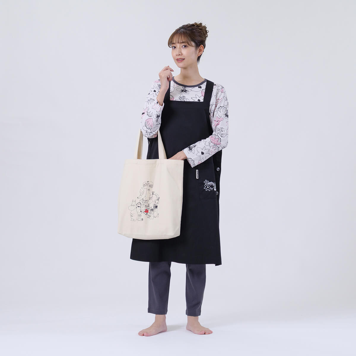 〈母の日ラッピング済み〉【MOOMIN ムーミン】×【Amour アムール】 リトルミイ刺繍 ツイル無地エプロン&コットンキャンバス トートバッグ