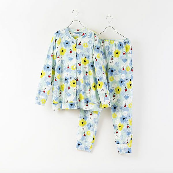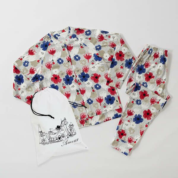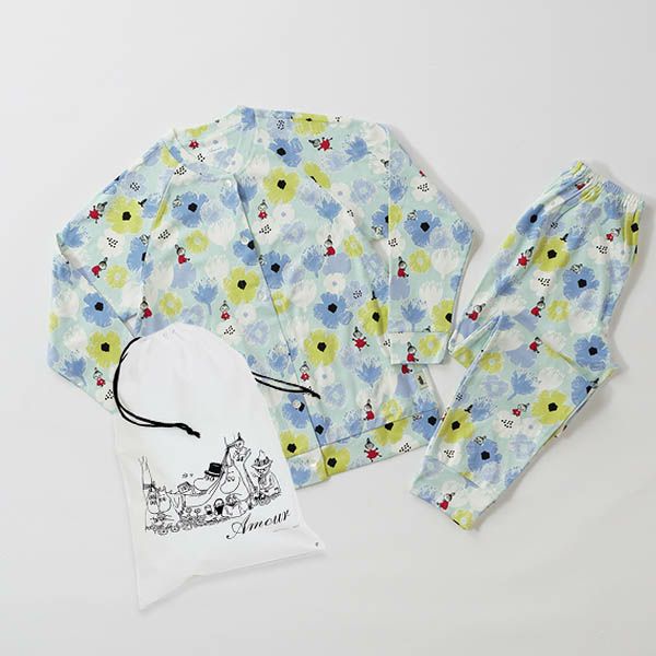 <ラッピング済み>【MOOMIN ムーミン】×【Amour アムール】スムースプリント フラワーモチーフ レディス 上下セット パジャマ