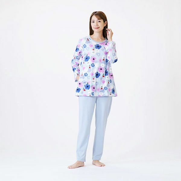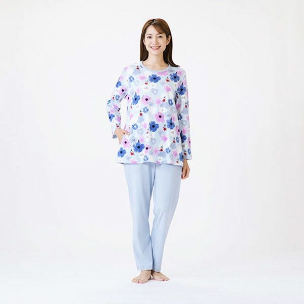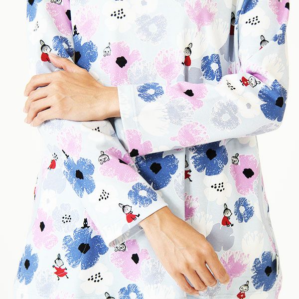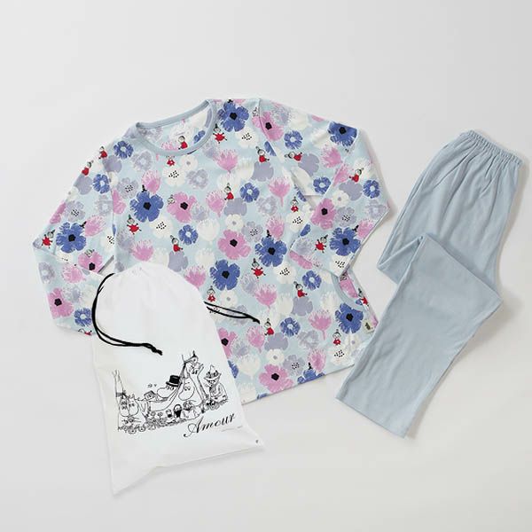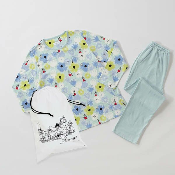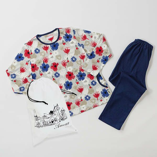 <ラッピング済み>【MOOMIN ムーミン】×【Amour アムール】スムースプリント フラワーモチーフ レディス 上下セット パジャマ ルームウェア