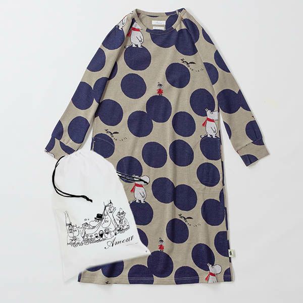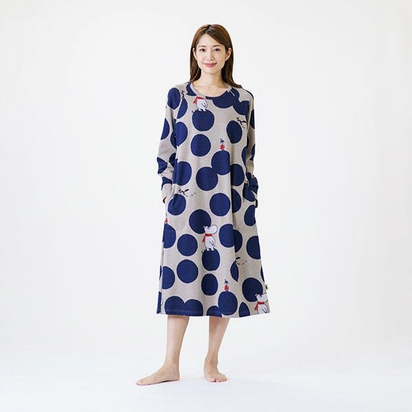 <ラッピング済み>【MOOMIN ムーミン】×【Amour アムール】ダブルジャカード 水玉柄 レディス ホームドレス お部屋着