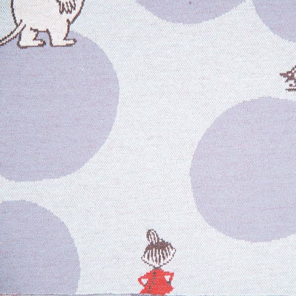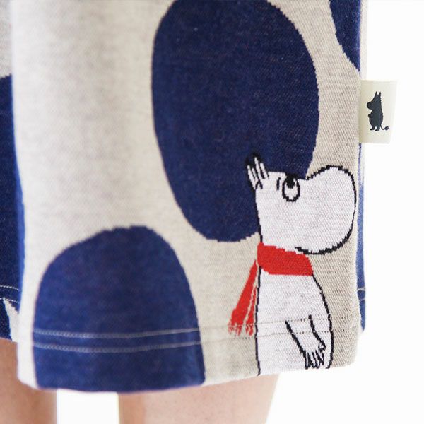 大きな水玉の中にたたずむムーミンとリットルミイの姿が印象的なホームドレスを、ムーミン柄のビニール巾着ラッピングに入れたギフトセットです♪