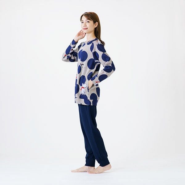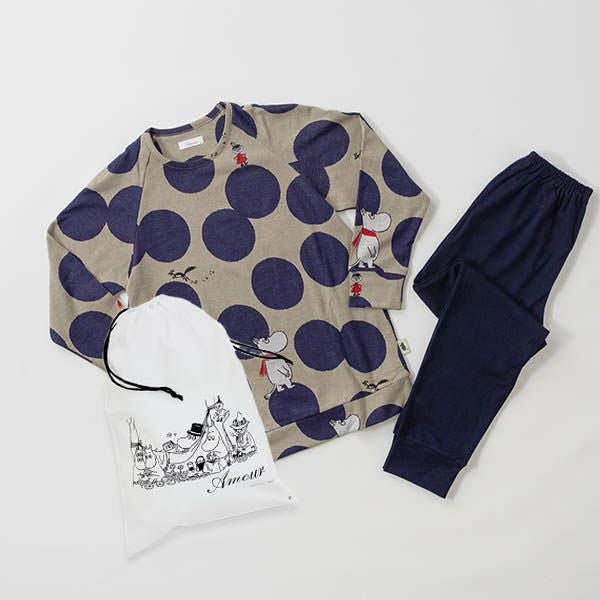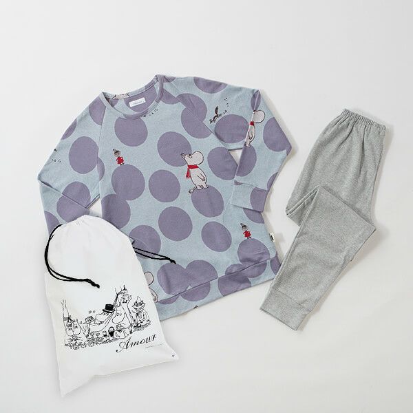 <ラッピング済み>【MOOMIN ムーミン】×【Amour アムール】ダブルジャカード 水玉柄 レディス 上下セットアップ お部屋着