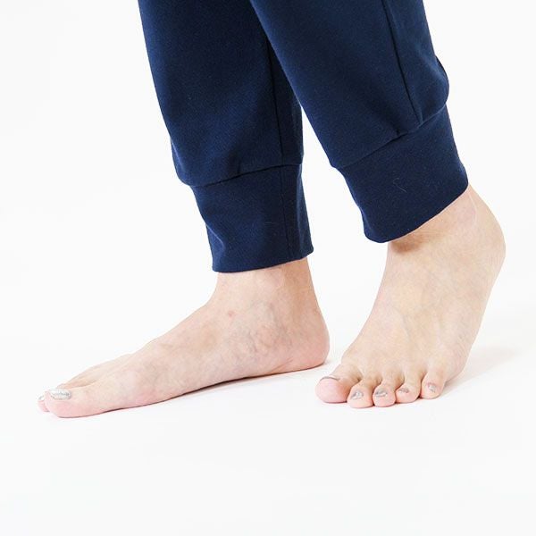 トップスはラグランスリーブの動きやすいスウェットタイプのデザイン、ボトムは無地で裾がフィットするデザインなので眠っていてもずり上がりにくく快適です。